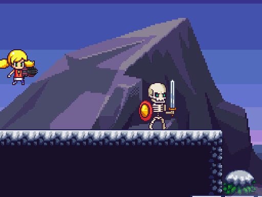 Skeletons walk left and right, turning at the edge of a platform or a wall. Every few seconds, the Skeleton will throw a bone projectile directly at Cally, no matter where she is in relation to the thrower. Skeleton bones can be parried, and will do a great deal of damage if they hit an enemy after being parried.
